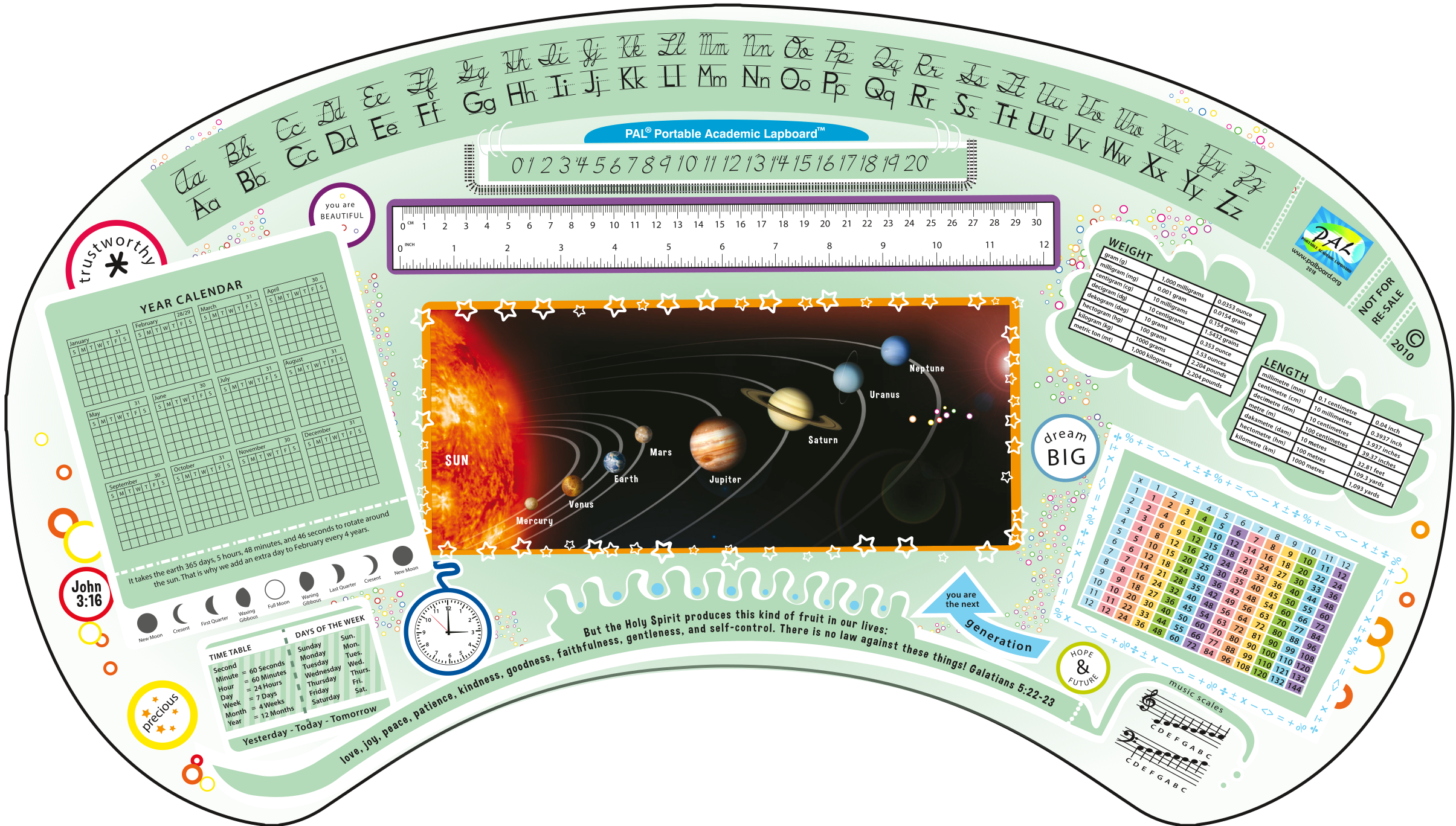 Power words that speak life, and all the basics of education are included both on the lapboard and defined in the teacher’s manual.